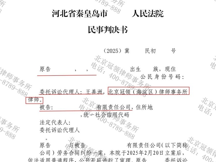 2025年6月,在广东广州工作的王女士,因与公司就加班费、年休假工资等劳动报酬问题产生分歧,求助到北京冠领(广州)律师事务所。经过冠领律师的努力,双方最终达成【查看全文】