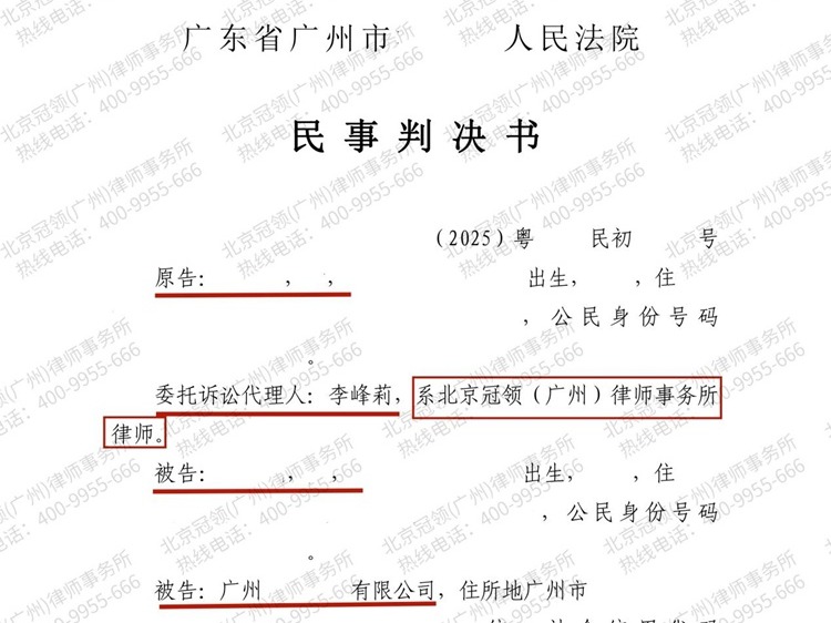 2025年8月27日,广州市人民法院对一起机动车交通事故责任纠纷案作出判决,采纳北京冠领(广州)律师事务所律师的代理意见,判决保险公司向当事人白小仙支付赔偿款【查看全文】