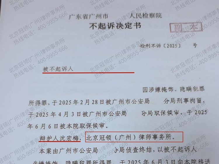 2025年12月5日,广州市某区人民检察院对一起掩饰、隐瞒犯罪所得案件作出不起诉决定。周奇凯(化名)因在微信群“抢红包”被指控涉嫌掩饰、隐瞒犯罪所得罪,在冠领律【查看全文】