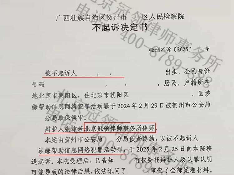 近期,冠领律师担任广西贺州一起涉嫌帮助信息网络犯罪活动罪案的辩护人。本案证据链薄弱、事实认定存疑,律师通过精准把握主观明知要件和情节严重标准,提出关键辩护意见,【查看全文】