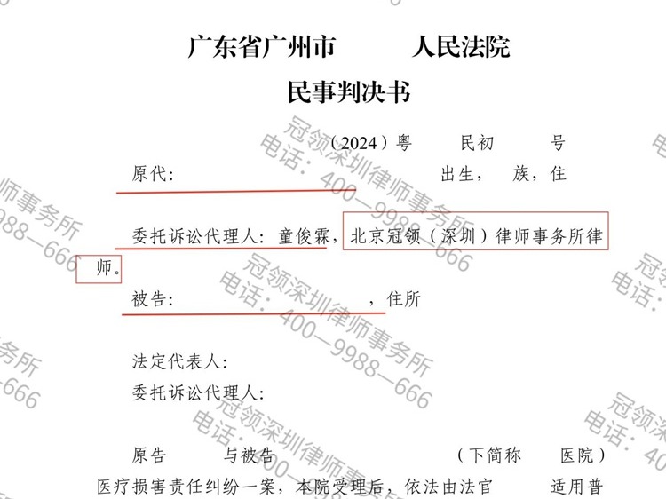 2021年,广东广州的李先生在当地一家医院接受男科手术后出现一系列不适症状。多次与医院协商解决无果后,李先生求助到北京冠领(深圳)律师事务所。最终,法院判定该医【查看全文】