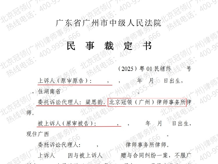 近日,北京冠领(广州)律师事务所凭借专业法律能力,成功帮助委托人刘先生推翻错误管辖裁定,让其与袁女士的赠与合同纠纷案重回广州某区人民法院审理,保障了刘先生的合【查看全文】