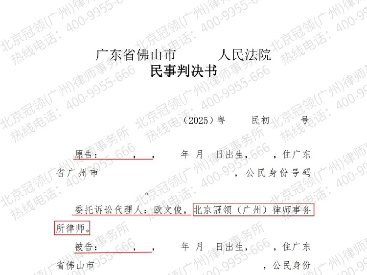 广东佛山的李先生因投资项目,卷入合同纠纷,遂委托北京冠领(广州)律师事务所代理诉讼。在冠领律师的帮助下,2025年5月,李先生成功追回相应资金,这场艰难的合同【查看全文】
