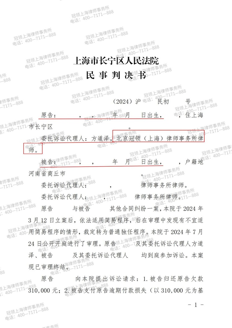 最终,冠领律师的观点被法院采纳,付先生成功追回八年前的欠款。