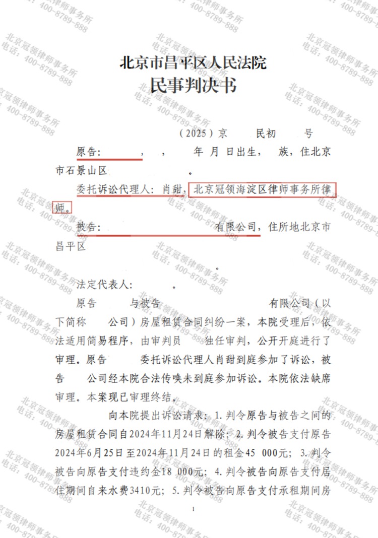 自2024年开始,北京昌平房东骆先生满心焦虑,物业公司长期拖欠租金,自家委托出租的房屋也被折腾得破败不堪。无奈之下,骆先生求助冠领律所,冠领律师潜心剖析案件,四处奔走取证,在法庭上据理力争。2025年3月,法院判决骆先生胜诉,物业公司需承担多项费用,冠领律师凭专业能力助骆先生打赢了这场维权诉讼。