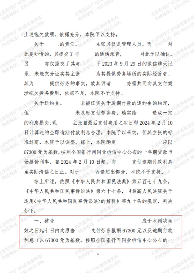 随后,律师用窦先生与薛先生的聊天记录,证明薛先生长期安排工作并承诺支付欠款,构成债务认可;又依据合同条款,强调文化娱乐公司的法定支付义务。最终,法院采纳冠领律师的代理意见,判决薛先生、文化娱乐公司向窦先生支付拖欠的劳务报酬及逾期利息。