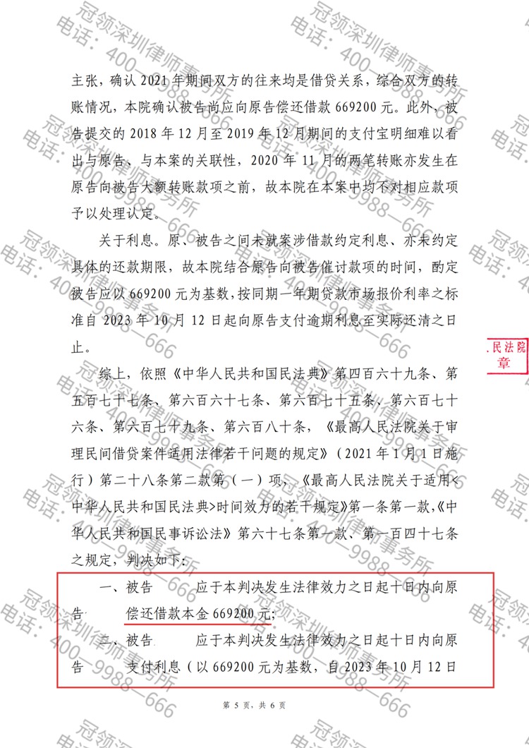 深圳赵女士因被前男友起诉偿还270万元借款向冠领律所求助。2025年5月,冠领律师结合款项性质与另案对方自认证据,力证双方不存在借款合意,助委托人驳回对方无理诉求,免于担负巨额债务。